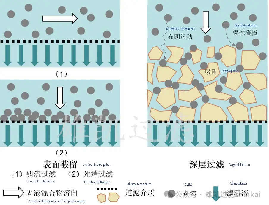 Solid-liquid filtration separation the main principle is to use porous media or filter material to intercept solid particles, the liquid in the driving force (pressure, gravity, centrifugal force, etc.) under the action of the filter through the material, so as to realize solid-liquid separation. Its filtration mechanism can be divided into the following categories according to the way of intercepting the flow: